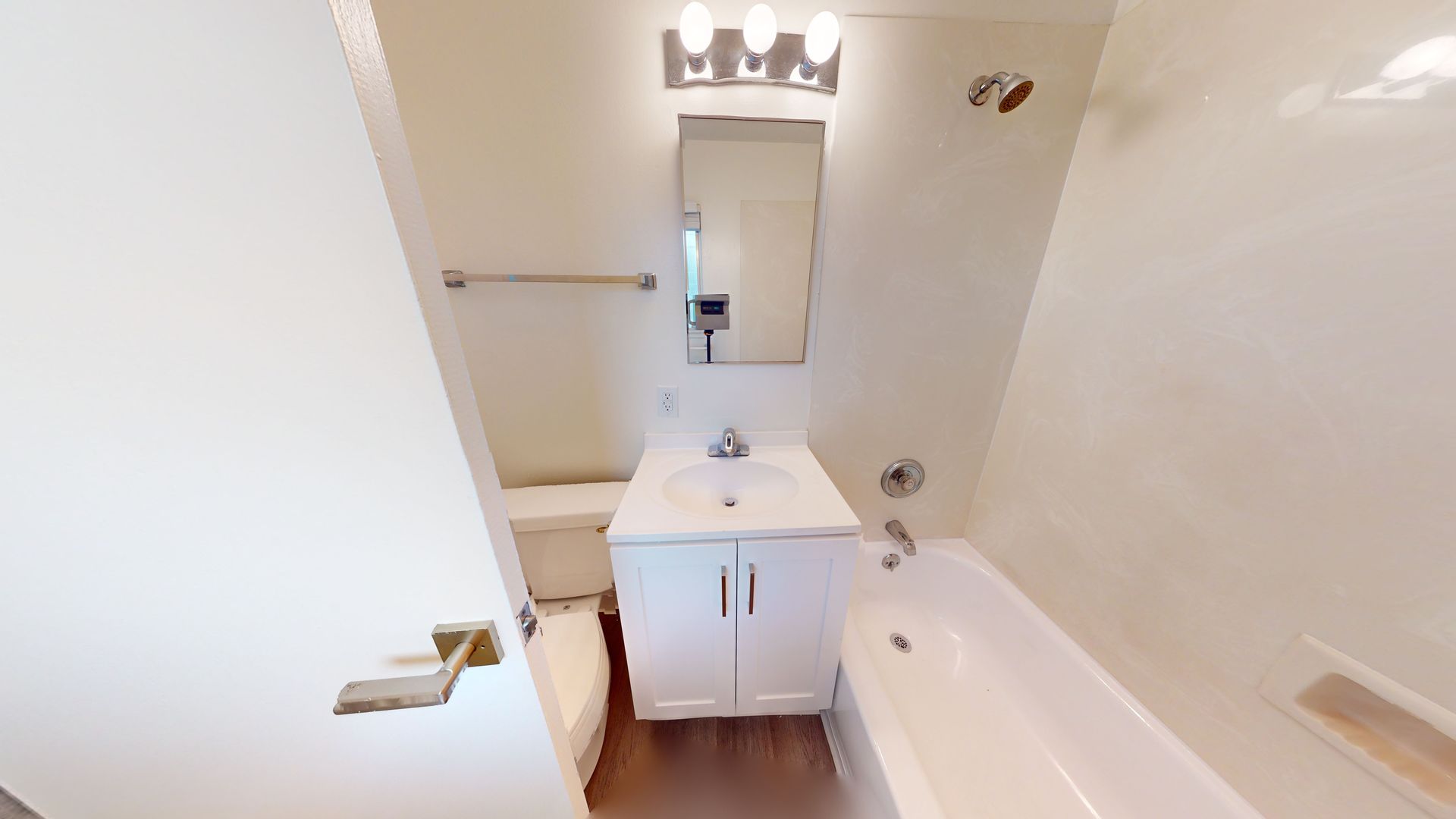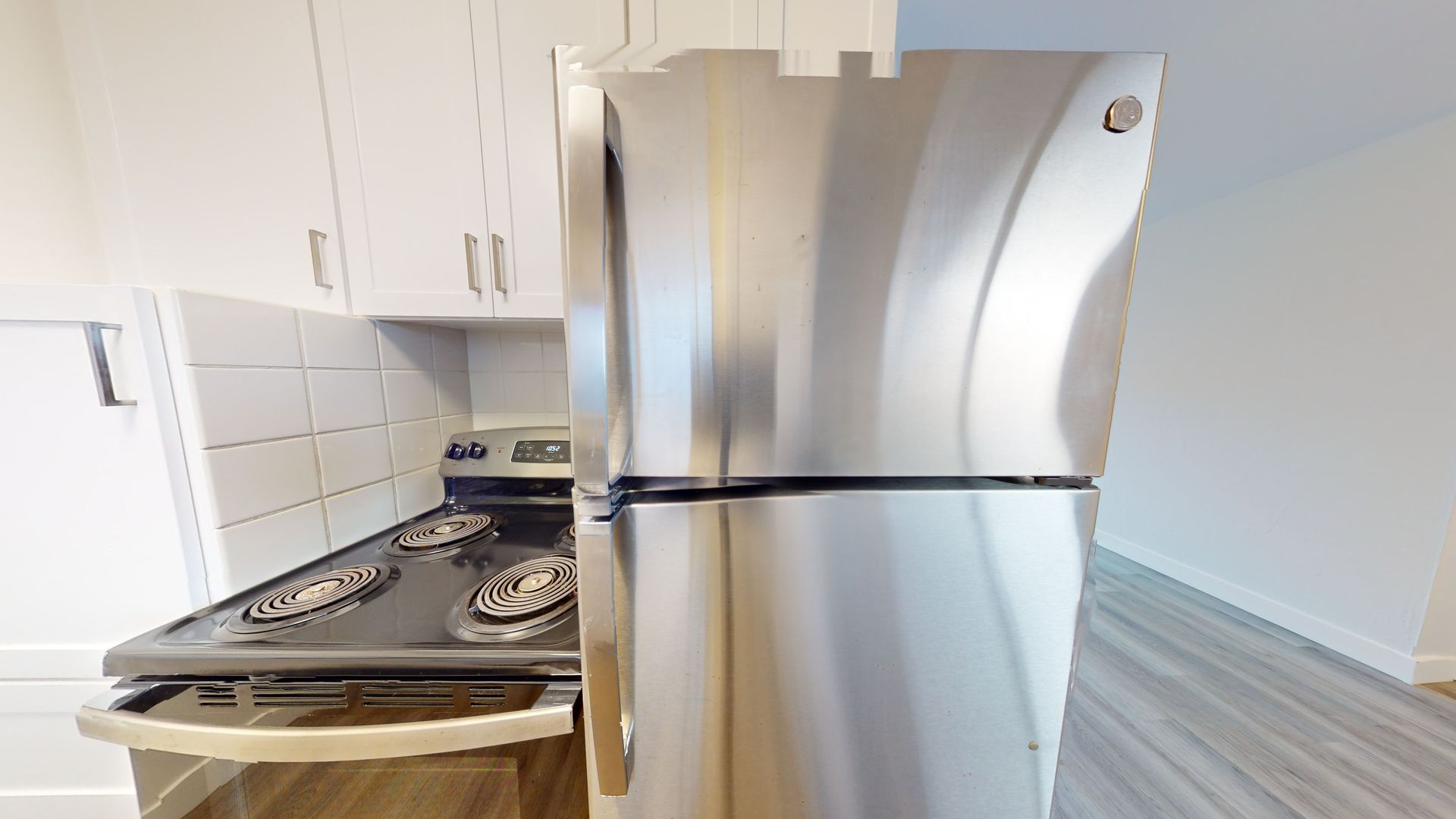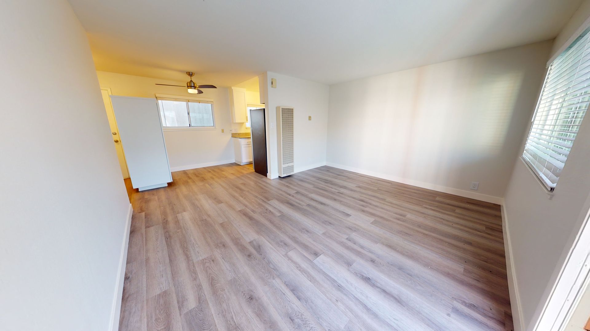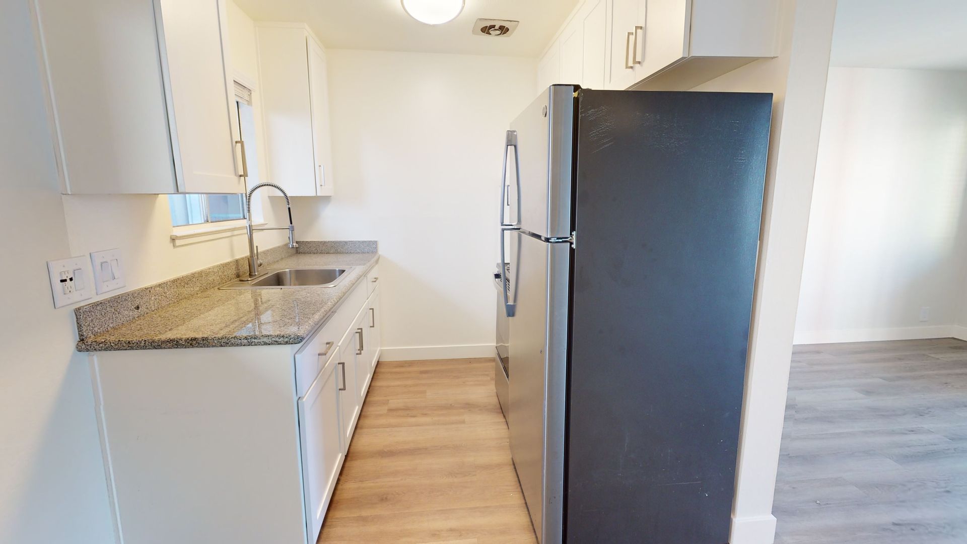 ** Stylish Laminate Wood Floors: The laminate wood flooring throughout the apartment enhances the overall appeal with an easy-to-maintain, sophisticated look.
