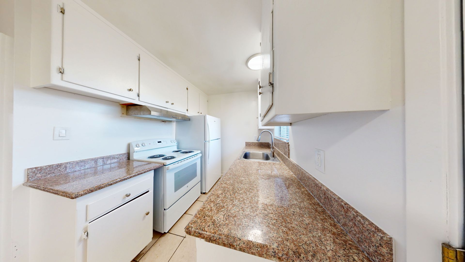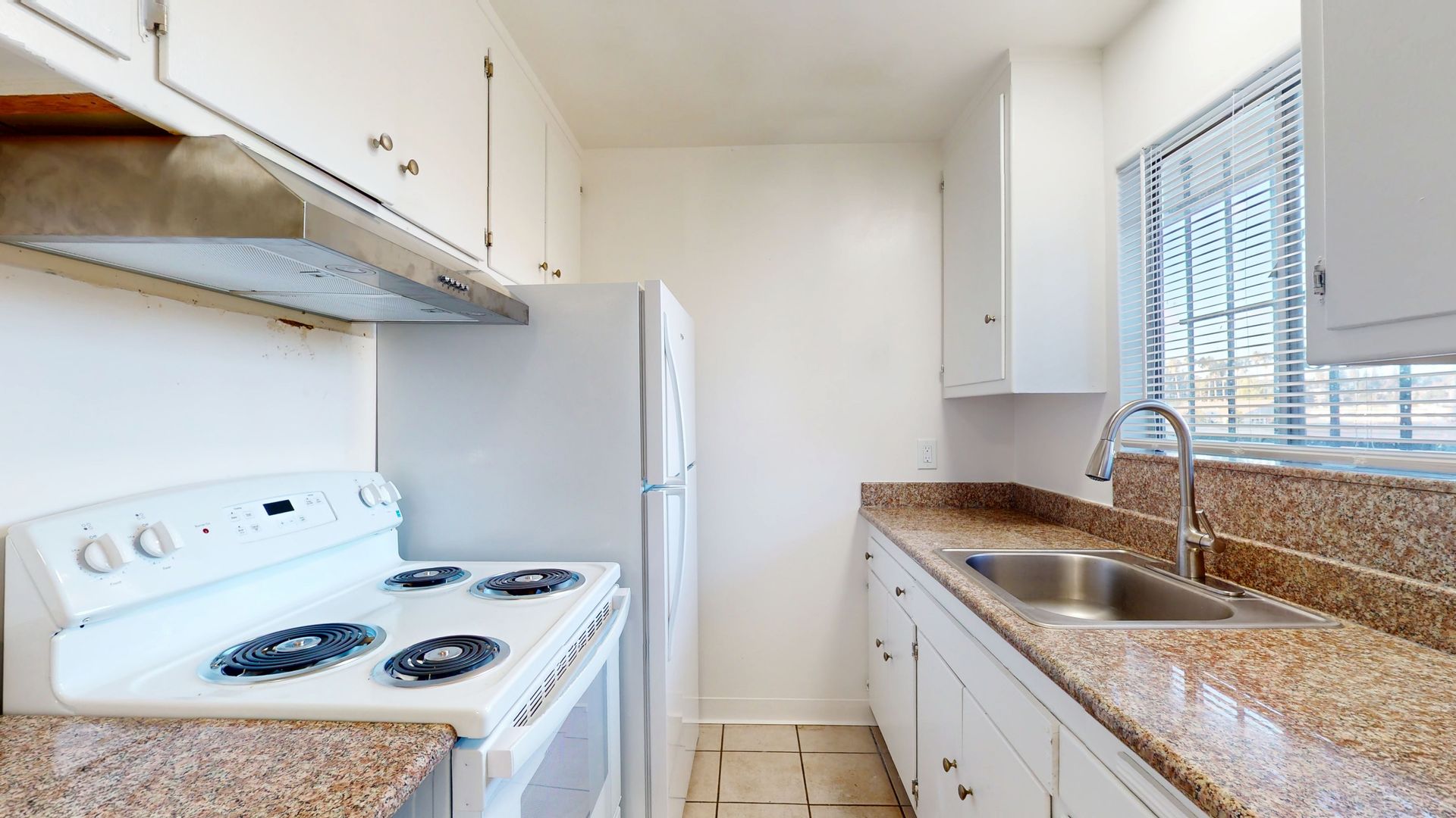 -Comfortable kitchen with good workspace.