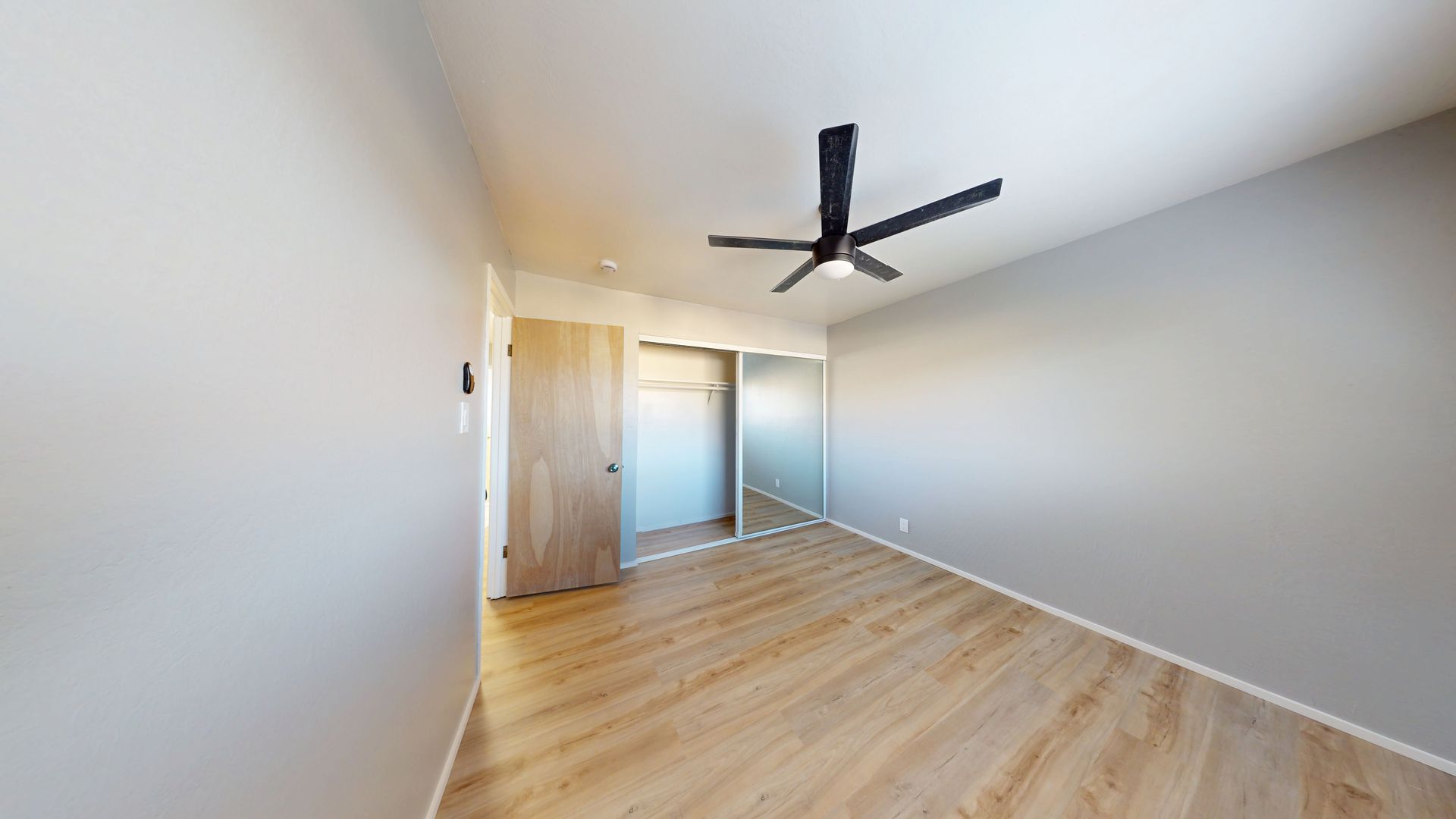 -2 bedrooms, each with its own closet.