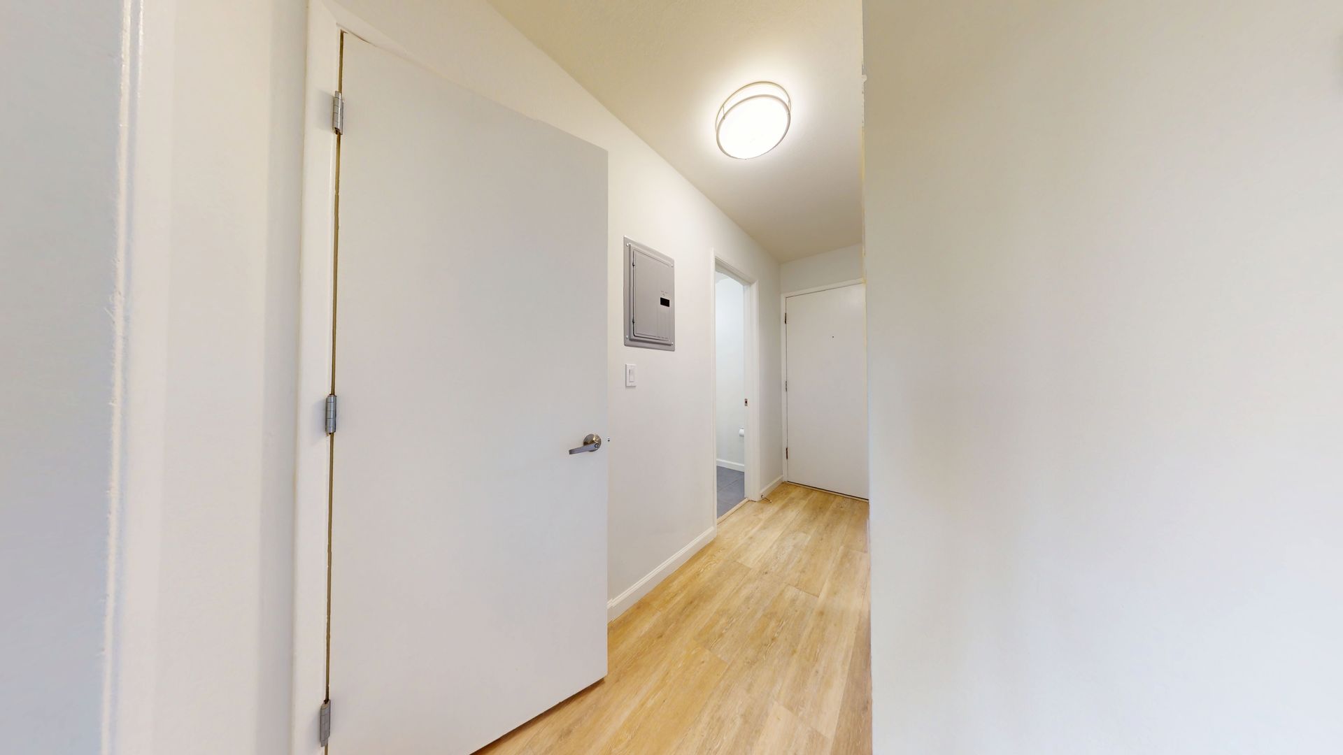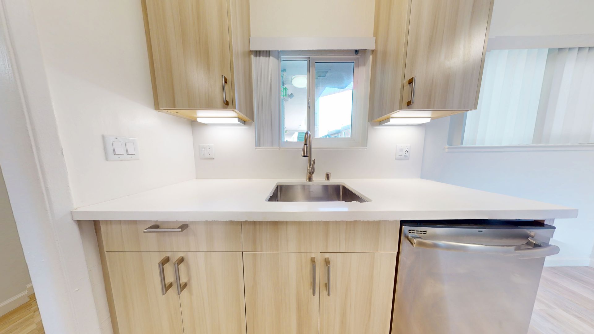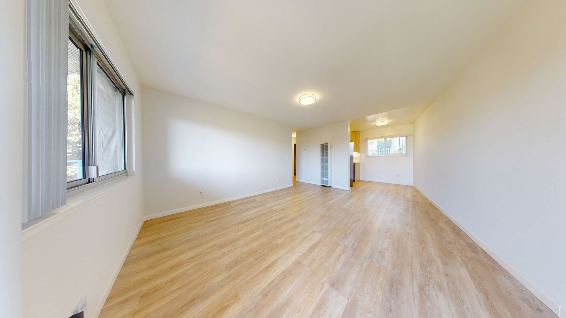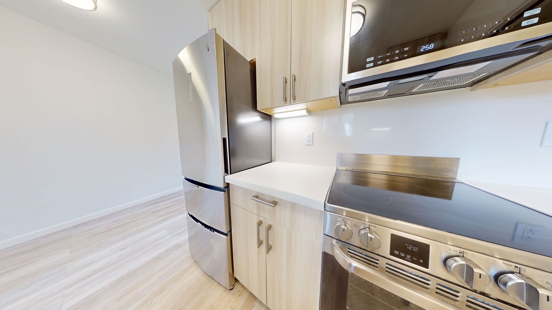 ** Stylish Laminate Wood Floors: The laminate wood flooring throughout the apartment enhances the overall appeal with an easy-to-maintain, sophisticated look.