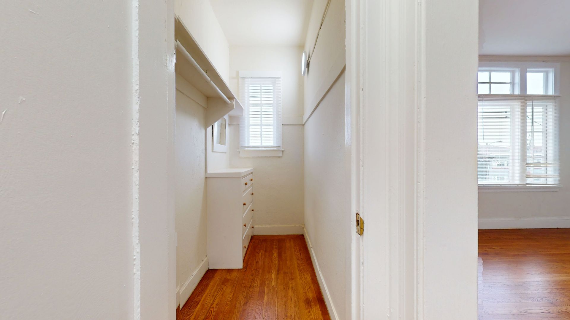 Large walk-in closet w/built-in dresser